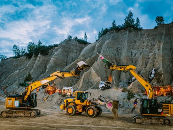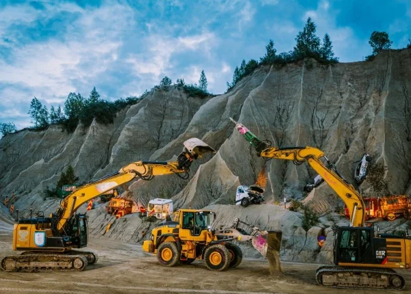 دو بڑی کرین نما کھدائی کرنے والی مشینوں کو ایسے سجایا گیا جیسے وہ اسٹیج کے فنکار ہوں۔