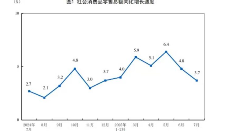 چین کی صارفی اشیاء کی کل خوردہ فروخت میں جولائی میں پچھلے سال کی اسی مدت کے مقابلے میں 3.7 فیصد اضافہ ریکارڈ