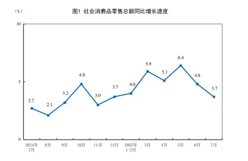 جنوری سے جولائی تک صارفین کی اشیاء کی مجموعی خوردہ فروخت 28.42 ٹریلین یوآن رہی جو سال بہ سال 4.8 فیصد اضافہ ہے، خدمات کی خوردہ فروخت میں 5.2 فیصد اضافہ ہوا اور اشیاء اور خدمات کی مشترکہ خوردہ فروخت میں سال بہ سال تقریباً 5 فیصد اضافہ ہوا ہے
